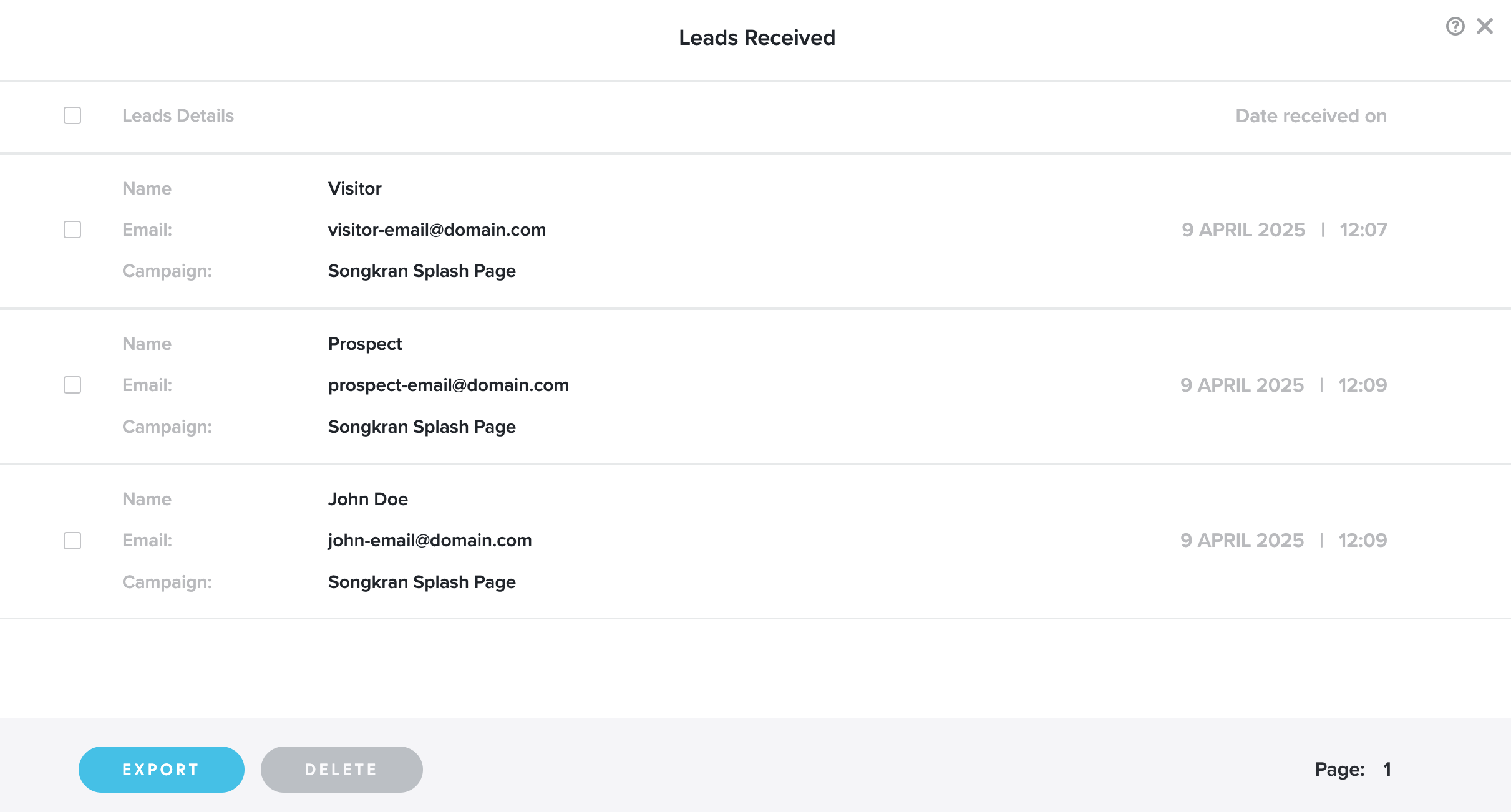 At the same time, the lead is also stored securely in your Landing Pad Dashboard, so you can always view or export your leads later.